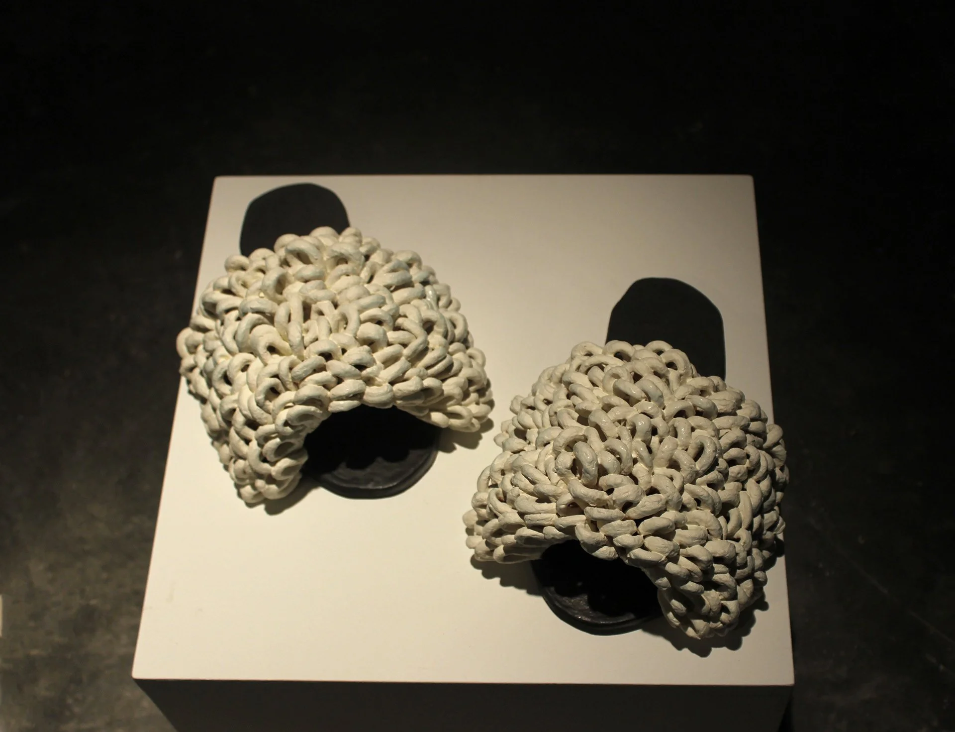 I obsess over objects, particularly those that others might overlook. Inspired by domestic interiors and the natural world, I isolate and scale up common things to invite human bodies into new, surreal experiences. Through clay, I simulate patterns and forms to reveal fundamental truths of structure. The clay’s material properties dictate how I manipulate it. From the restraints of wet clay against gravity, I react and respond. I combat what I cannot control in ways that I can, such as using weight and suspension to create anticipation and uneasiness.