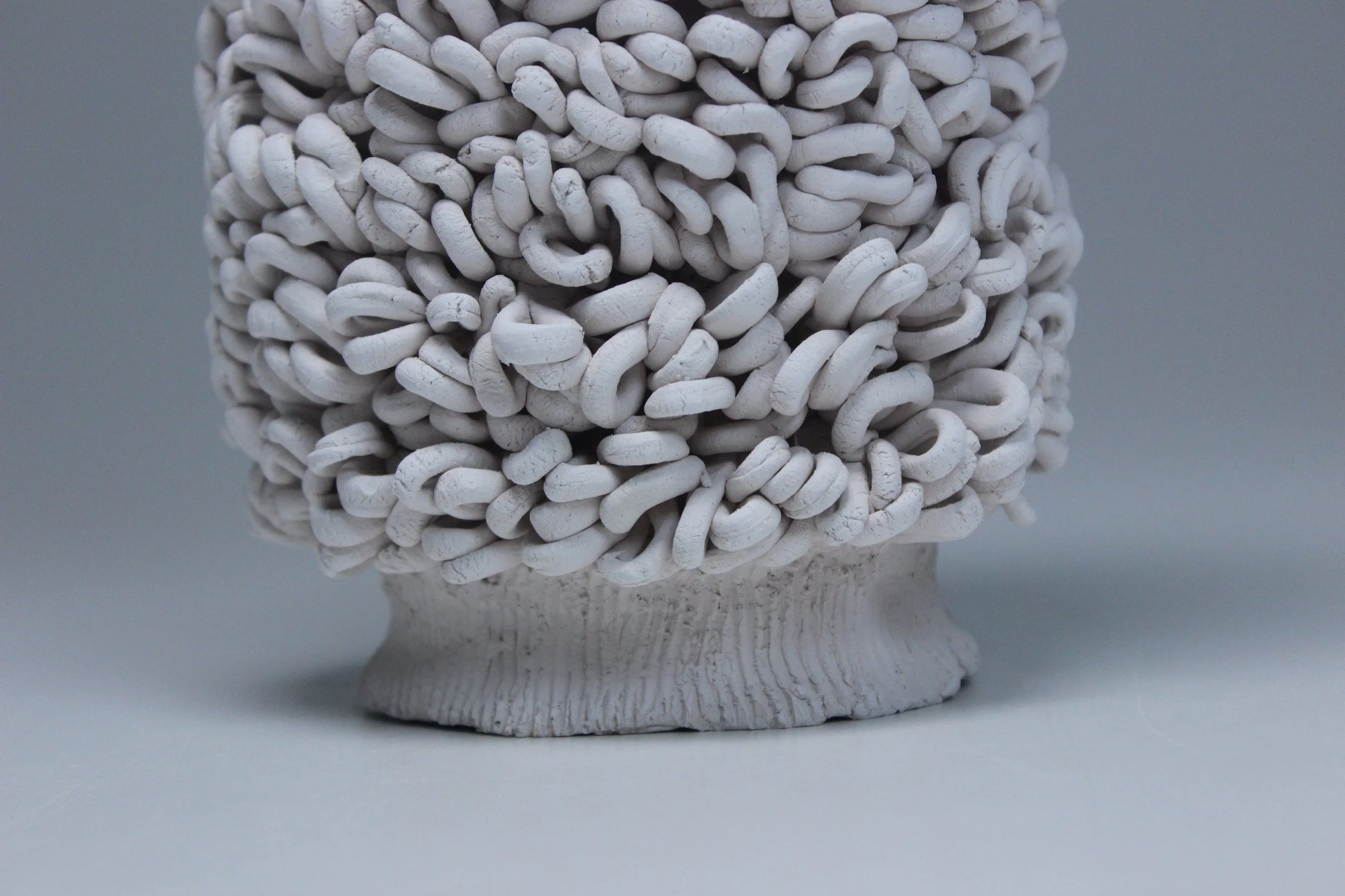 Before2018White Stoneware Fiber Clay, UnglazedFabricW: 4" x H: 11" W: 4 1/2" x H: 12" Diameter: 1/4" // 4 1/2"